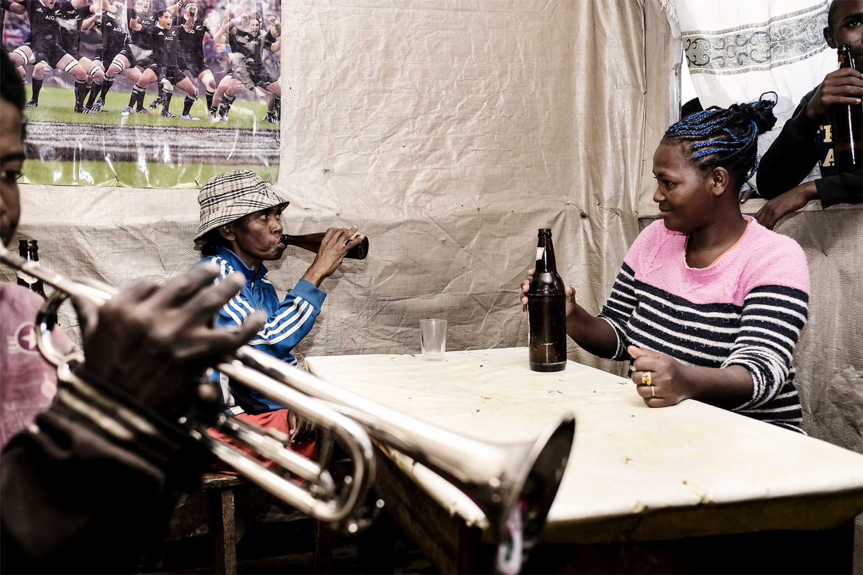BLUES TISSAGE Happy hour time après une journée de travail dans un bar local d’Anzesky. Antananarivo, 2020