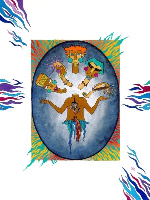 a series of 12 portraits and street photographs in search for the collective mystic challenger Identity, print on high end matt museum paper – juxtaposed with the acrylic on canvas of mythic characters and scenes